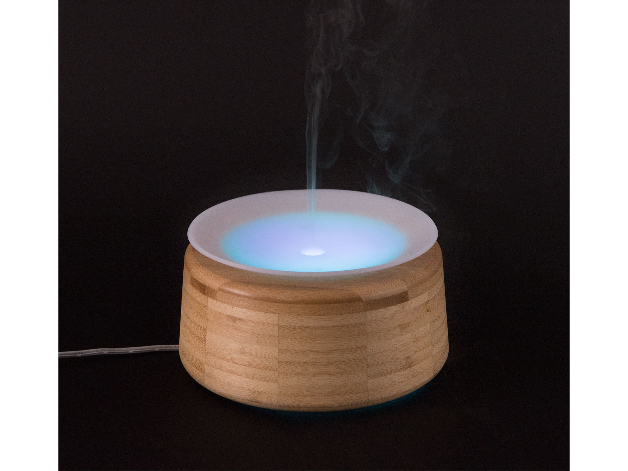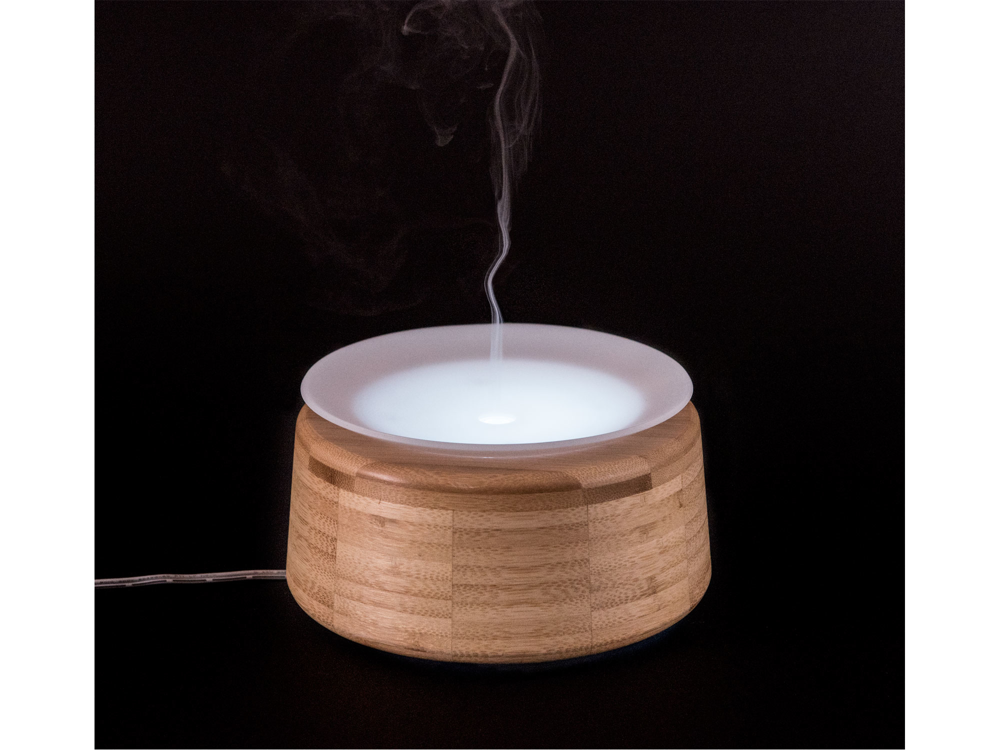 Zvlhčovač vzduchu s difuzérem v designu přírodního dřeva (imitace dřeva). Aromatizuje a zvlhčuje vzduch kombinací účinků vodní mlhy a esenciálních olejů. Pomocí jemného ultrasonického vlnění rozkládá esenciální oleje na extrémně malé mikročástice, aniž by je zahříval. Oleje si tak zachovávají původní vůni i léčivé účinky.