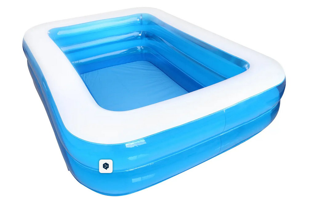 Obdélníkový nafukovací bazén je určený k letnímu koupání a osvěžení na zahradě.