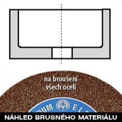 | Vhodné použití na: | Ideální na broušení běžných ocelí třídy 11 do tvrdosti 55HRC |