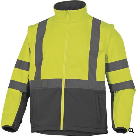 Bunda softshellová: zapínání na zip, odepínací rukávy, 2 kapsy, vysoká viditelnost: třída 2; materiál: softshell (96%polyester, 4% elasten)
