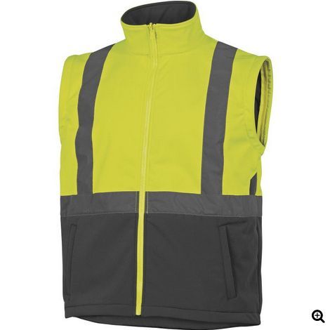 Bunda softshellová: zapínání na zip, odepínací rukávy, 2 kapsy, vysoká viditelnost: třída 2; materiál: softshell (96%polyester, 4% elasten)