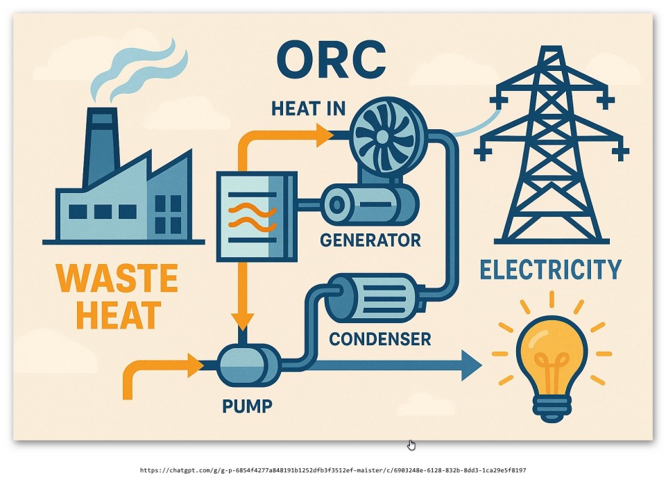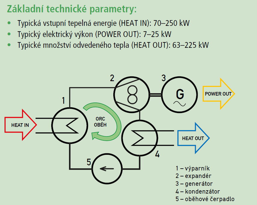 Organický Rankinův cyklus (ORC) promění i nízkopotenciální teplo na elektřinu.