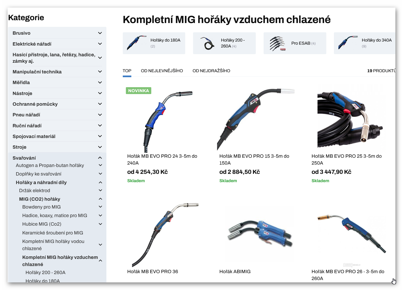 Ideálně vybrat hořák s levnými a široce dostupnými díly (Binzel kompatibilita).