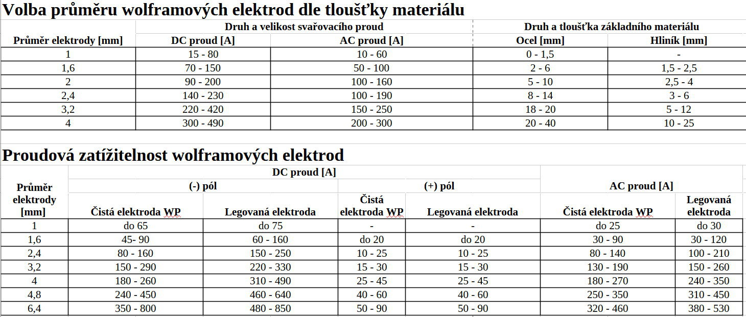Jaký průměr wolframové elektrody zvolit pro TIG svařování? A jaká je jejich zatížitelnost?