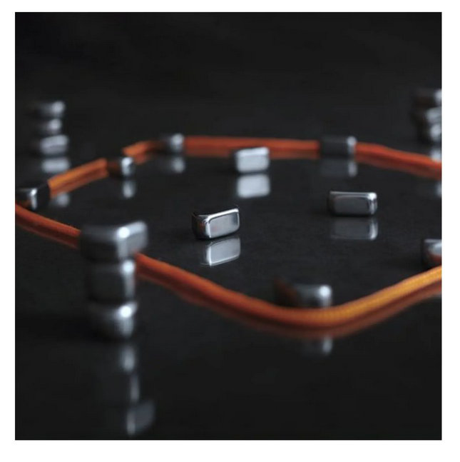 Hra Kluster obsahuje: 24 magnetických kamenů, 1 provázek, 1 sáček.