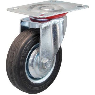 kolo s kovovým pozinkovaným diskem, jehlové ložisko, černá pryž - vidlice s pozinkovaného ocelového plechu, dvě řady kuliček v otoči - odolné teplotě -10°C až +60°C