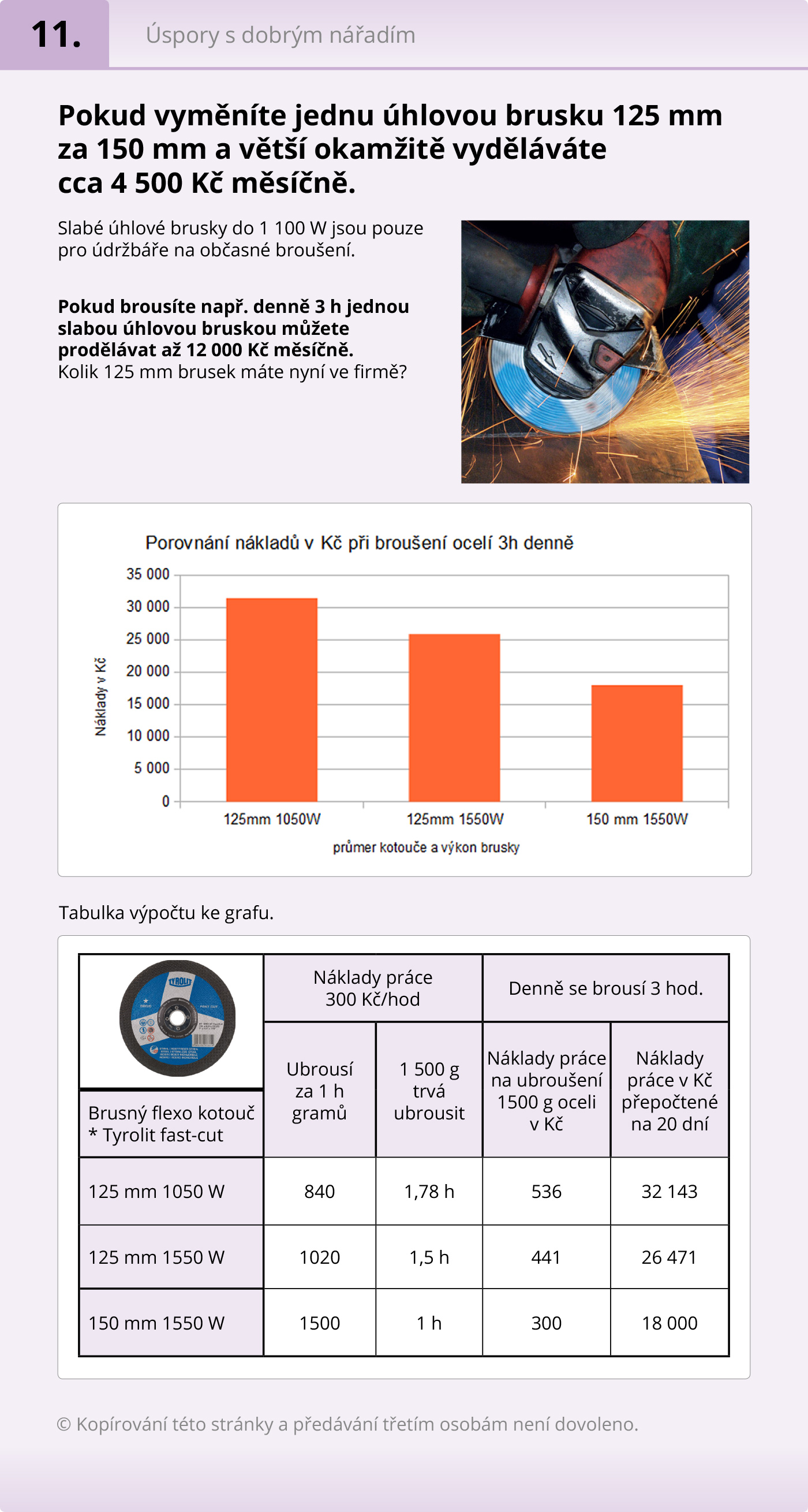 Pokud vyměníte jednu úhlovou brusku 125 mm za 150 mm a větší okamžitě vyděláváte cca 4 500 Kč měsíčně