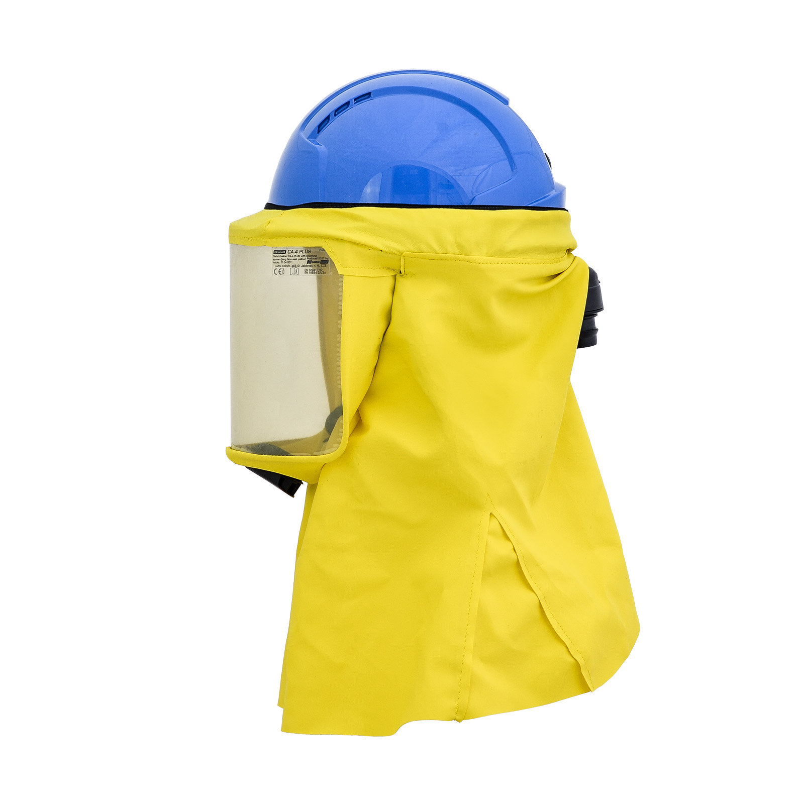 Přilba CA-4 pro Clean-air s ventilkem,hluchátky, polycarbonovým Štítem, žlutá kápě