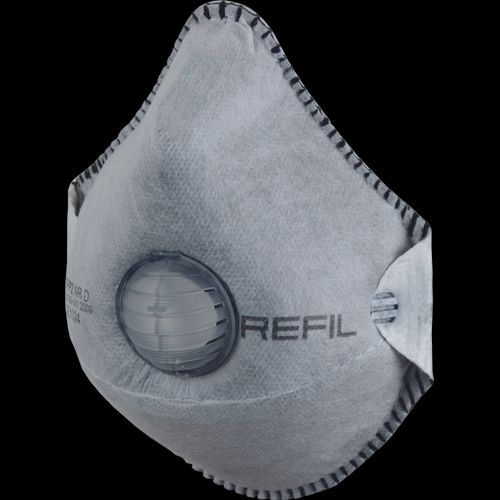 Skládaný respirátor, chrání před pevnými částicemi a aerosoly do 12-násobku NPK ( bakterie, plísně, ocel, zinek, svářečské dýmy, beton, kámen, kov, rez, měkké dřevo, sklolaminát, staré nátěry, uhlí, saze, zdivo, grafit, hliník ).