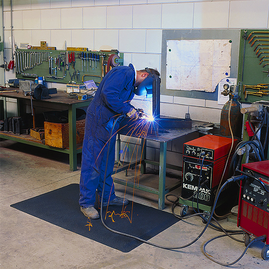 Černá protiskluzová průmyslová rohož určená pro suchá prostředí, kde se svařuje nebo pájí. Rohož je odolná vůči odlétajícím jiskrám při svařování i úkapům při pájení. Díky vynikajícím protiúnavovým vlastnostem zmírňují únavu při dlouhodobém stání a chrání pracovníky před negativními vlivy studených betonových podlah. Po obvodu jsou vybaveny náběhovou hranou pro prevenci zakopnutí. Rubová strana je opatřena membránou RedStop bránící posouvání rohože.