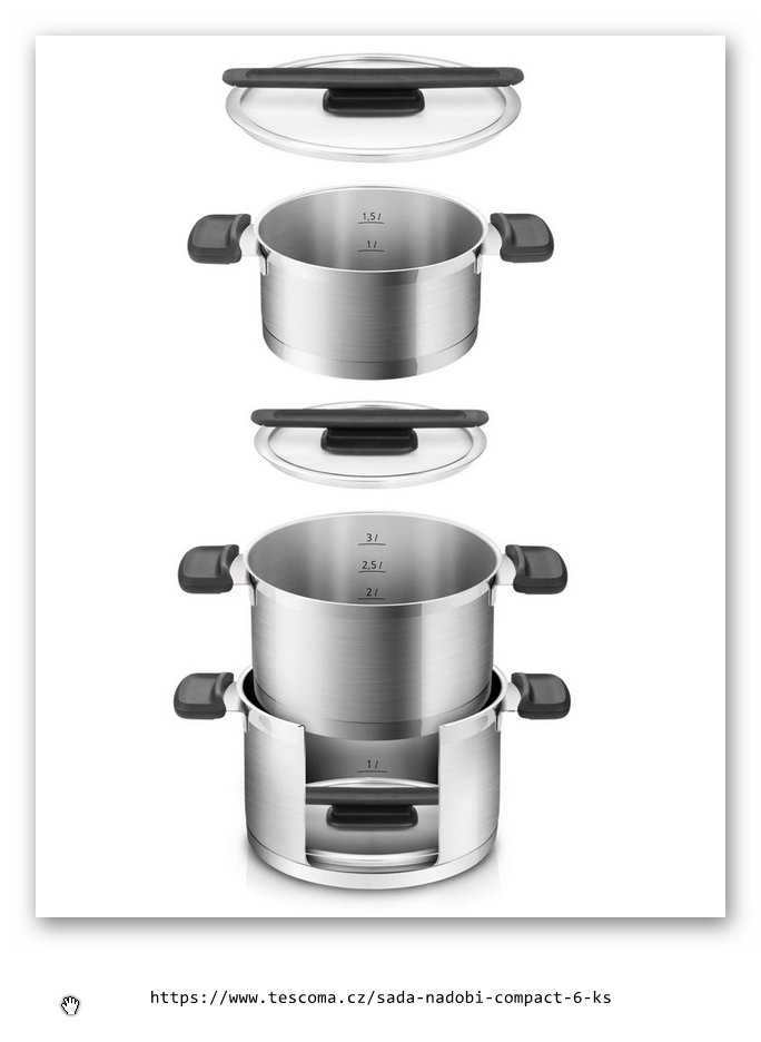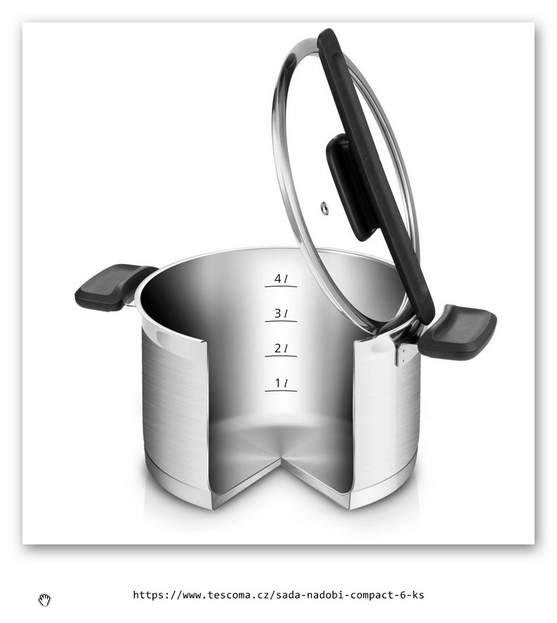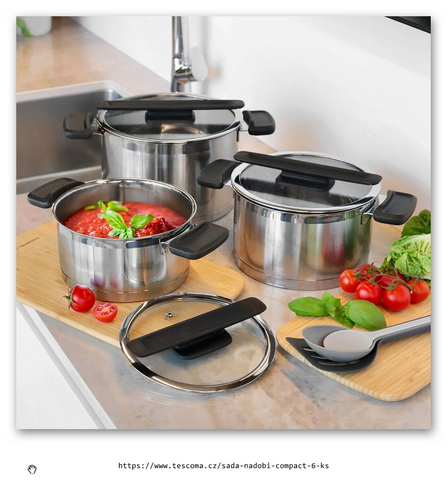Moderní kuchyňské nádobí s unikátními sklonerezovými poklicemi, komfortními úchyty z odolného plastu, třívrstvým sendvičovým dnem a odměřovací stupnicí. Poklice lze bezpečně odkládat na okraj nádoby, kondenzovaná pára steče zpět do nádobí. Dokonale skladné, nádobí lze stohovat, poklice vložené uvnitř nádob výrazně šetří místo v kuchyni. Vyrobeno z prvotřídní nerezavějící oceli, vhodné pro všechny typy sporáků včetně indukčních. Vhodné do myčky. 5 roků záruka.