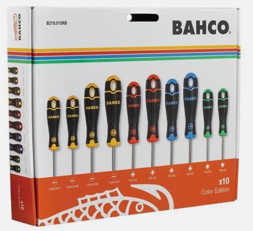 Sada šroubováků BahcoFit s barevnou rukojetí, 10 ks