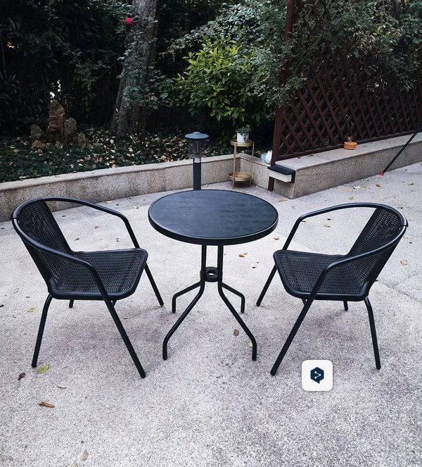 Set zahradní ratan PH/kov stůl + 2 židle černý