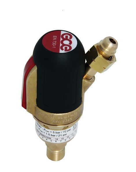 Použití : zajišťuje bezpečnost při autogenních procesech připojením na lahvové redukční ventily a výstupní místa rozvodů technických plynů