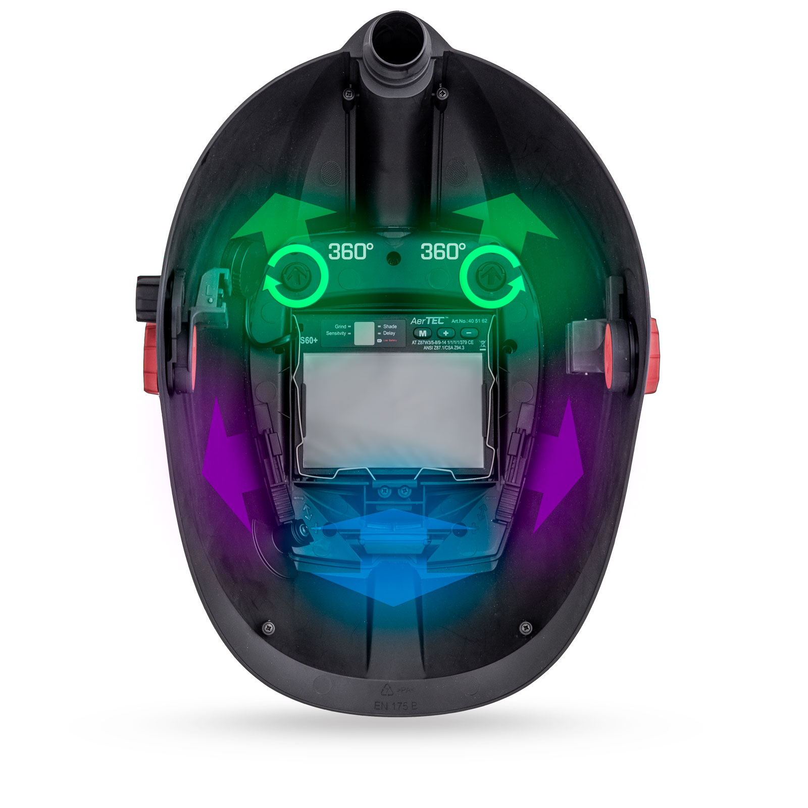 Verus air je profesionální svářečská kukla vhodná pro většinu svařovacích metod, jako je MIG/MAG, TIG, plasmové řezání a svařování, drážkování uhlíkovou elektrodou a svařování a řezání plamenem. Není vhodná pro laserové svařování.