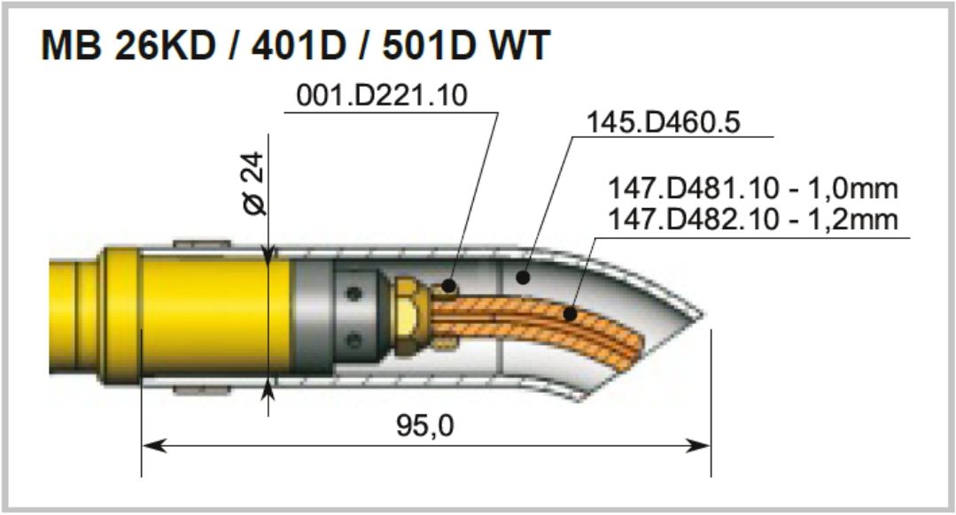Průvlak CuCrZr M8/1,2 zahnutá 501D/401D/26KD do Zahnuté hubice pro hořák 401D/501D/26KD
