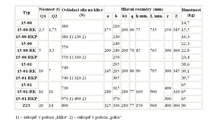 zvedák - typ 15-00 / 2,5t, hmotnost zvedáku 15 kg